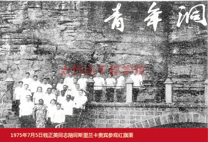 1975年7月5日錢正英同志陪同斯里蘭卡貴賓參觀紅旗渠。