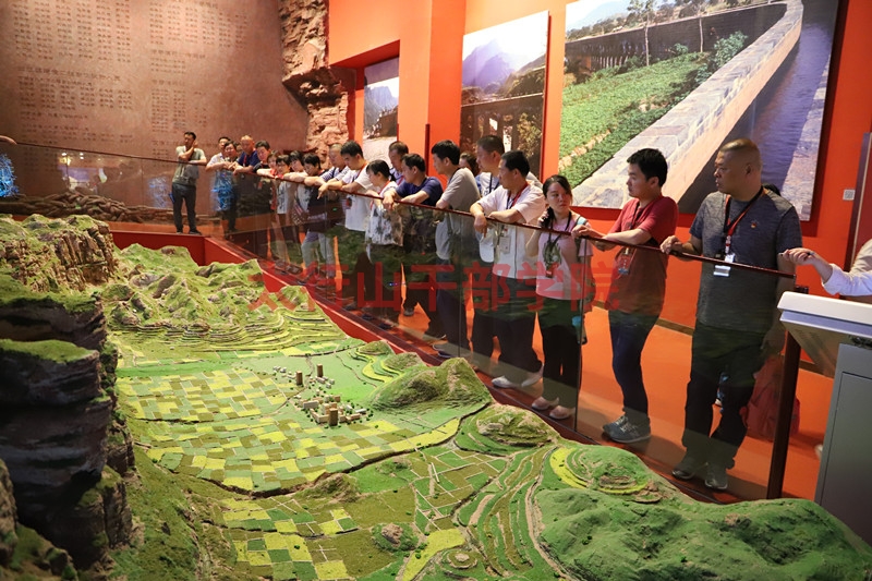紅旗渠紀(jì)念館不僅是一座以研究、展示、傳承、收藏紅旗渠歷史的一座展館。也是我們學(xué)員感悟“自力更生、艱苦創(chuàng)業(yè)”的紅旗渠精神的一個重要窗口。學(xué)員們在展館前留念,并進行現(xiàn)場教學(xué)
